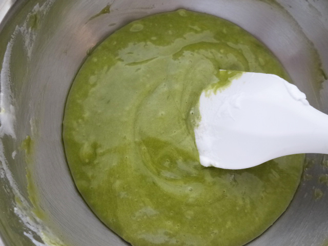合わせてふるった粉類を加え粉が見えなくなるまで混ぜる。