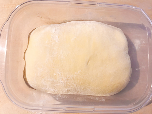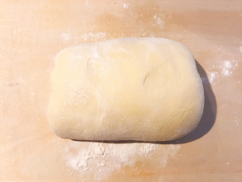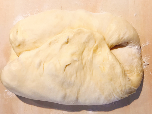 生地の材料を全て入れ、1次発酵まで行う。ガスを抜き、三つ折りにして更に反対側も三つ折