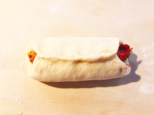 ケチャップ、マスタードは入れすぎると生地からはみ出て成型できなくなるので少な目が良いです。