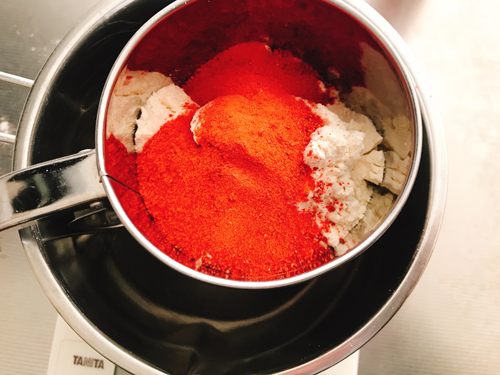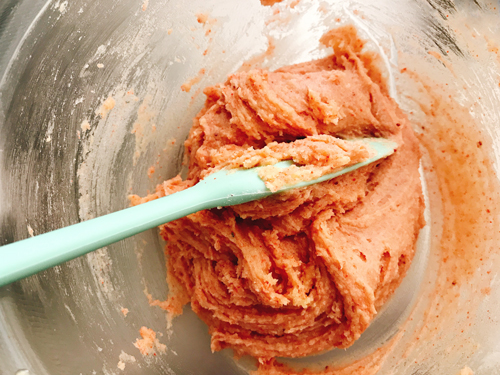 薄力粉、アーモンドパウダー、ストロベリーパウダーを振るっておく。