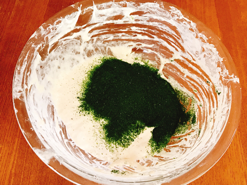 青のりをいっぺんに入れると一箇所に固まってしまうので何回かに分けて混ぜ込んでください。