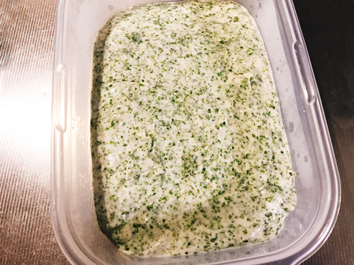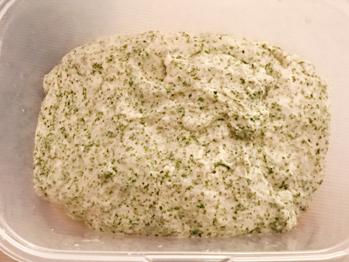 青のりを入れ、よく混ぜて密閉容器に入れる。冷蔵庫で一晩休ませる。