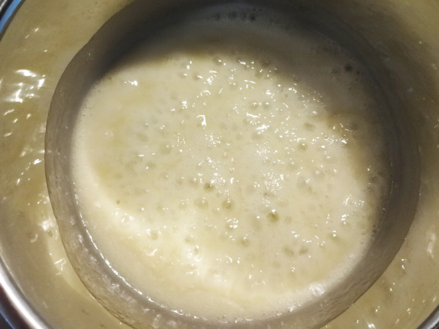 片手鍋にヌガーの材料(アーモンドスライスと黒ゴマ以外)を入れ中火にかける。ヘラで混ぜながら全体が沸騰したら火を止めアーモンドスライスと黒ゴマを加えて混ぜる。