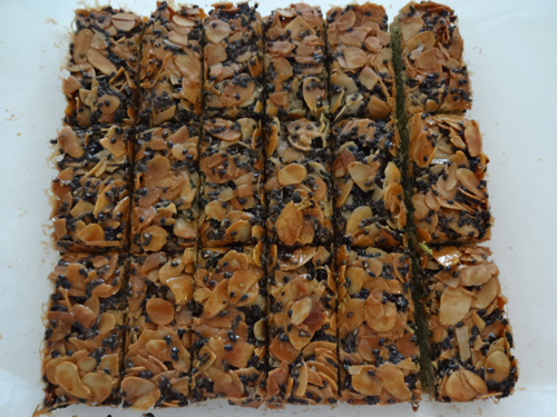 粗熱がとれたら(まだ温かいうちに)3cm×6cmの18ケ分にナイフでカットする。