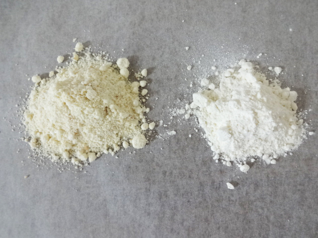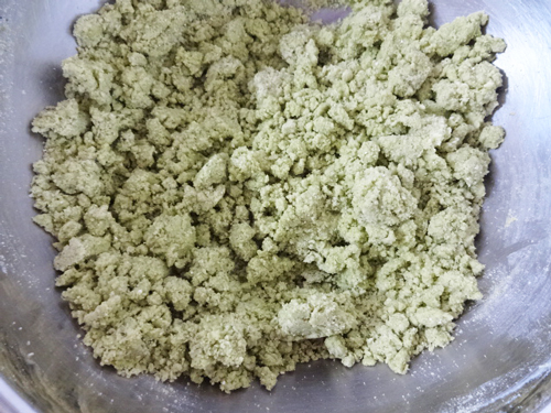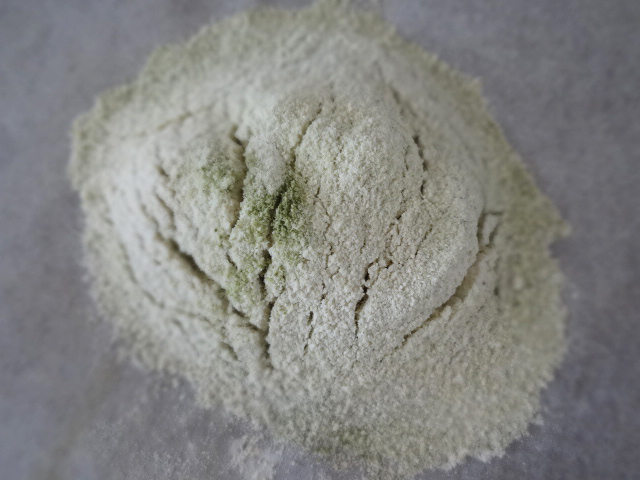 冷めたらアーモンドパウダーと抹茶パウダーを合わせて一緒にふるっておく。