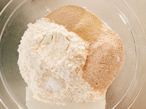 ボウルに水以外の生地の材料を入れ、手でだまがなくなるまで混ぜ合わせる。分量の水を少しずつ入れ、生地がまとまるまでこねる。