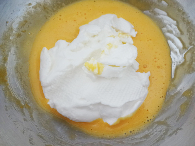 残りのメレンゲを加えゴムベラでさっくりと混ぜる。