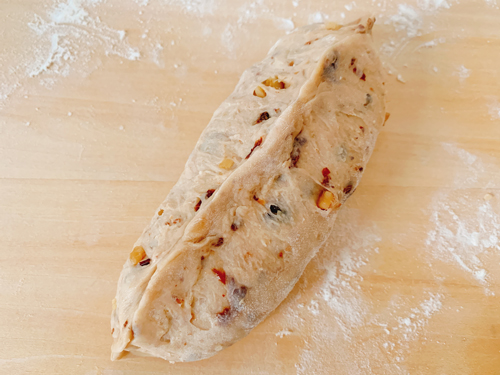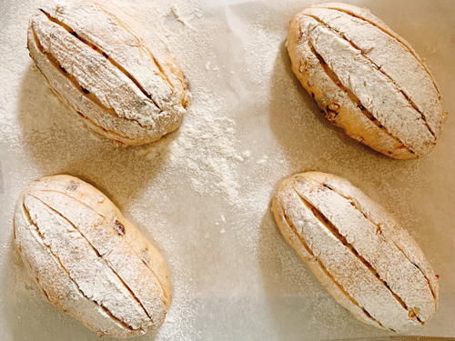 オーブン230度で予熱。分量外の強力粉を掛け、5本クープを入れる。