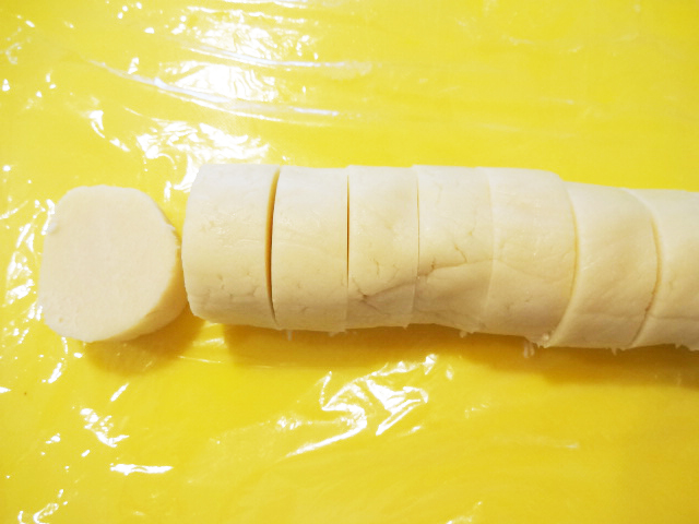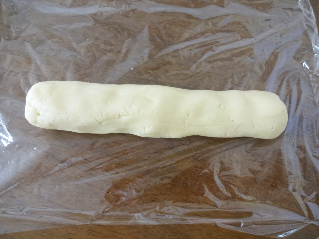 直径3センチほどの棒状に成形し、ラップ材で包んで冷蔵庫で1時間休ませる。