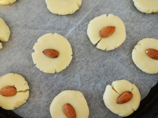 170℃のオーブンへ入れ、12~15分焼く。焼きあがったらオーブンから出し天板にのせたまま粗熱をとる。