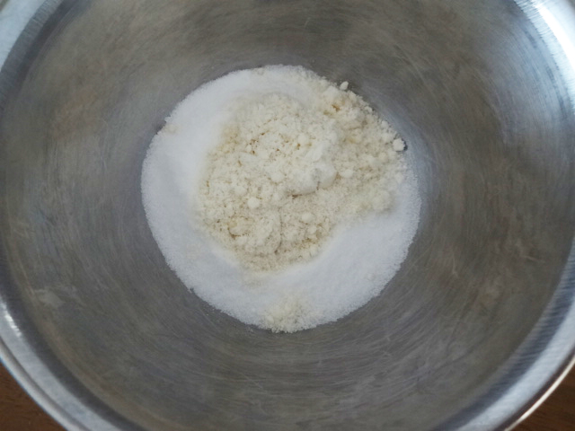 グラニュー糖と杏仁霜をよく混ぜ合わせる