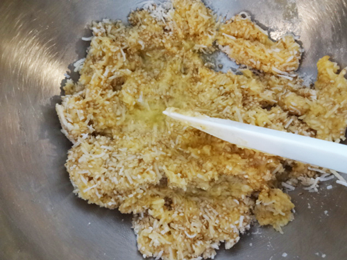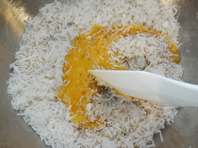 食感を残すためにココナッツロングは荒く刻んで使います。