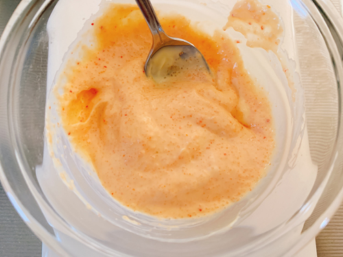 明太子の皮をとり、マヨネーズと混ぜておく。