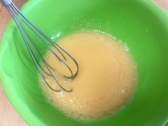 ボウルにホットケーキミックス粉以外の材料を入れてよく混ぜる。