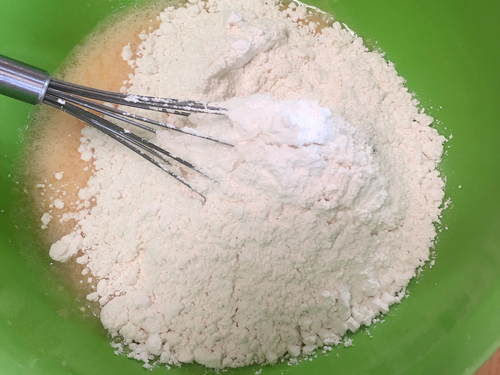 ホットケーキミックス粉を入れ、よく混ぜる。