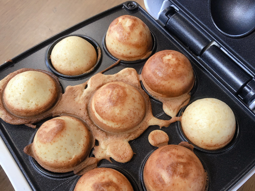 たこ焼き器の場合は膨らんできたらコロコロ返しながら焼く。