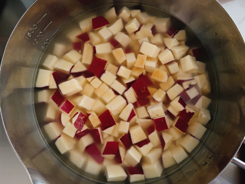 さつまいもはホクホクしたものの方が形が残りうまく煮えます。