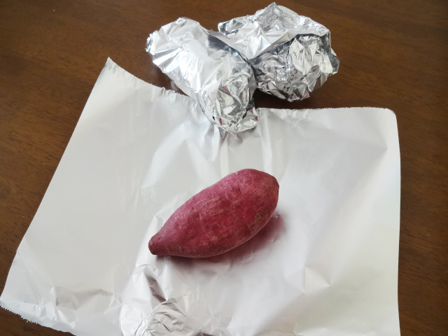 (クリームを作る)さつまいもアルミホイルで包み180℃のオーブンへ入れ1時間焼く。竹串で刺してすっと通ればオーブンから出し裏濾してペースト状にする。50g用意する。