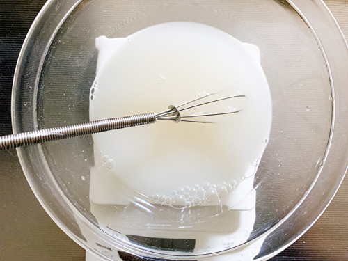 ボウルにモルトを入れ、分量内の水で良く溶かす。水全量をボウルに入れ、イースト、砂糖を入れ、良く混ぜる。