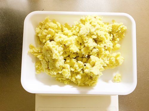 暖かい内にフォークなどで粗く潰して冷ましておく。