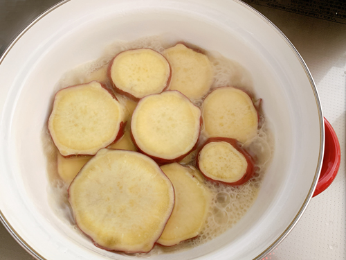 さつまいもは良く洗い、輪切りにして水にさらす。