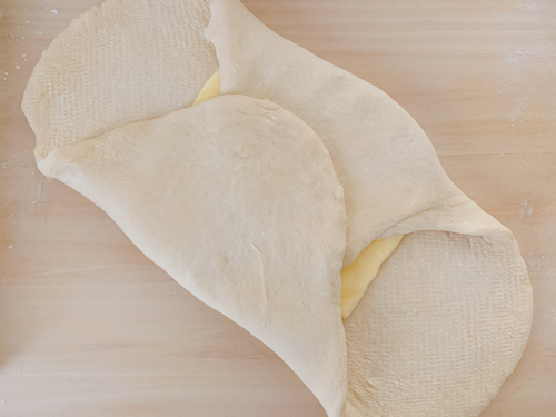 生地を空気が入らないように中心に向かってたたみ、しっかりとじる。