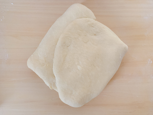 生地の向きを90度変え、7の作業を繰り返す。計3回折り込んだ後、ラップ、濡れぶきんで包みビニールに入れて、
