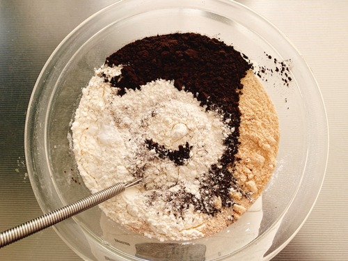ボウルに水以外の生地の材料を入れ、ホイッパーなどでだまがなくなるまで混ぜ合わせる。