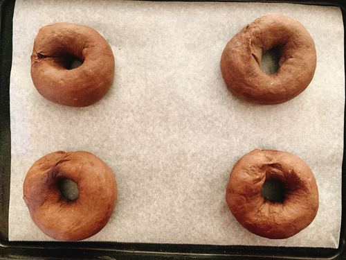 先程の天板に並べ、濡れ布巾を掛け、ビニール袋で全体を覆う。一回り大きくなるまで生地を休ませる。