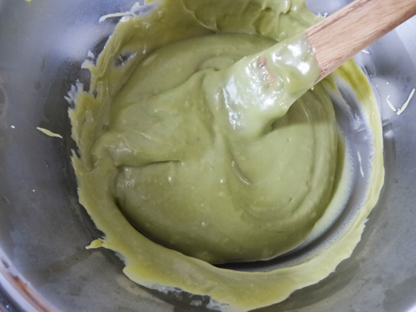 (クリームを作る)鍋に牛乳を入れ軽く沸騰させる。ボウルに卵黄とグラニュー糖を入れよく混ぜる。ふるった薄力粉と抹茶パウダーを加え混ぜ、牛乳を加える。