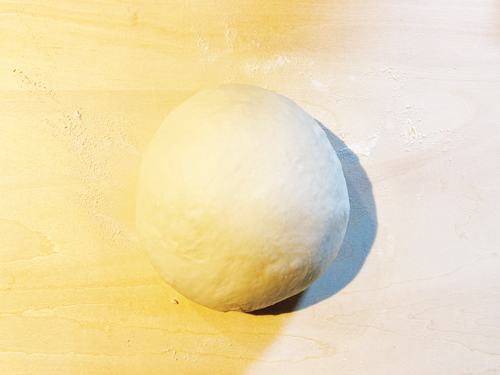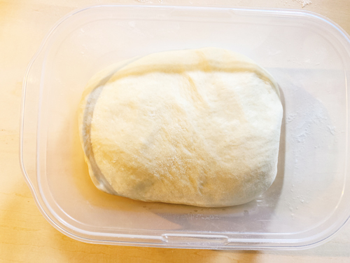 手粉をし、ガスを抜く。丸めて、密閉容器に入れ冷蔵庫に入れ60分ほど休ませる。