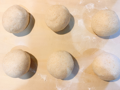 6等分にし、丸める。濡れ布巾を掛け、ベンチタイム15分。