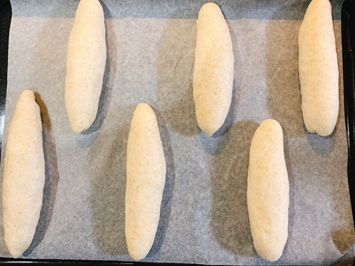 オーブンペーパーを敷いた天板に並べる。全体をビニール袋で覆い2次発酵60分。