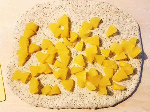 麺棒で20×30cmの伸ばし、りんごを散らす。